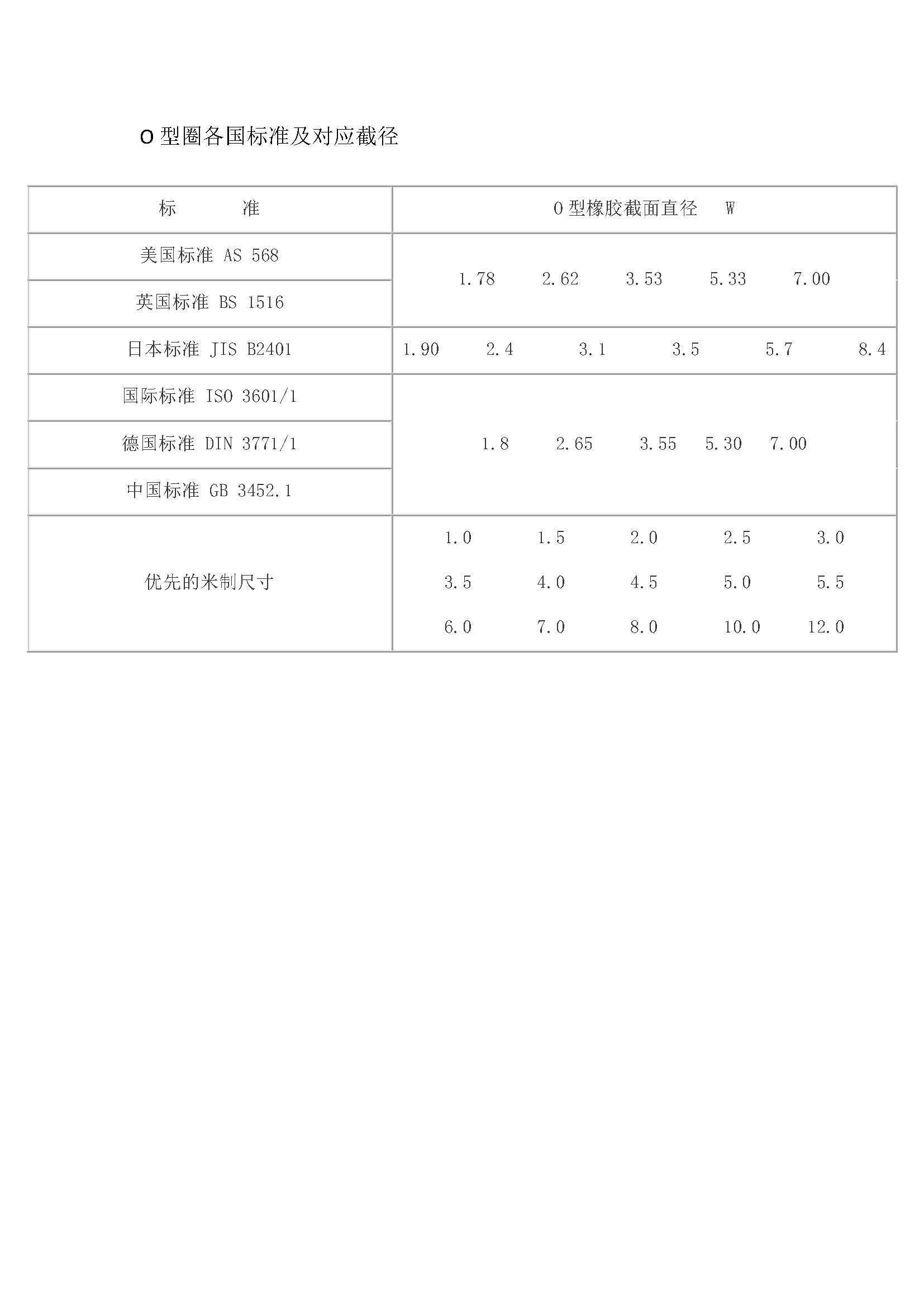 O型圈各國標(biāo)準(zhǔn)及對應(yīng)截徑