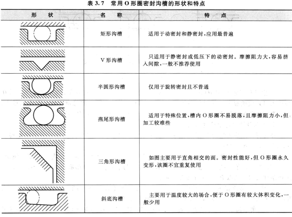 常用0形圈密封溝槽的形狀和特點(diǎn)