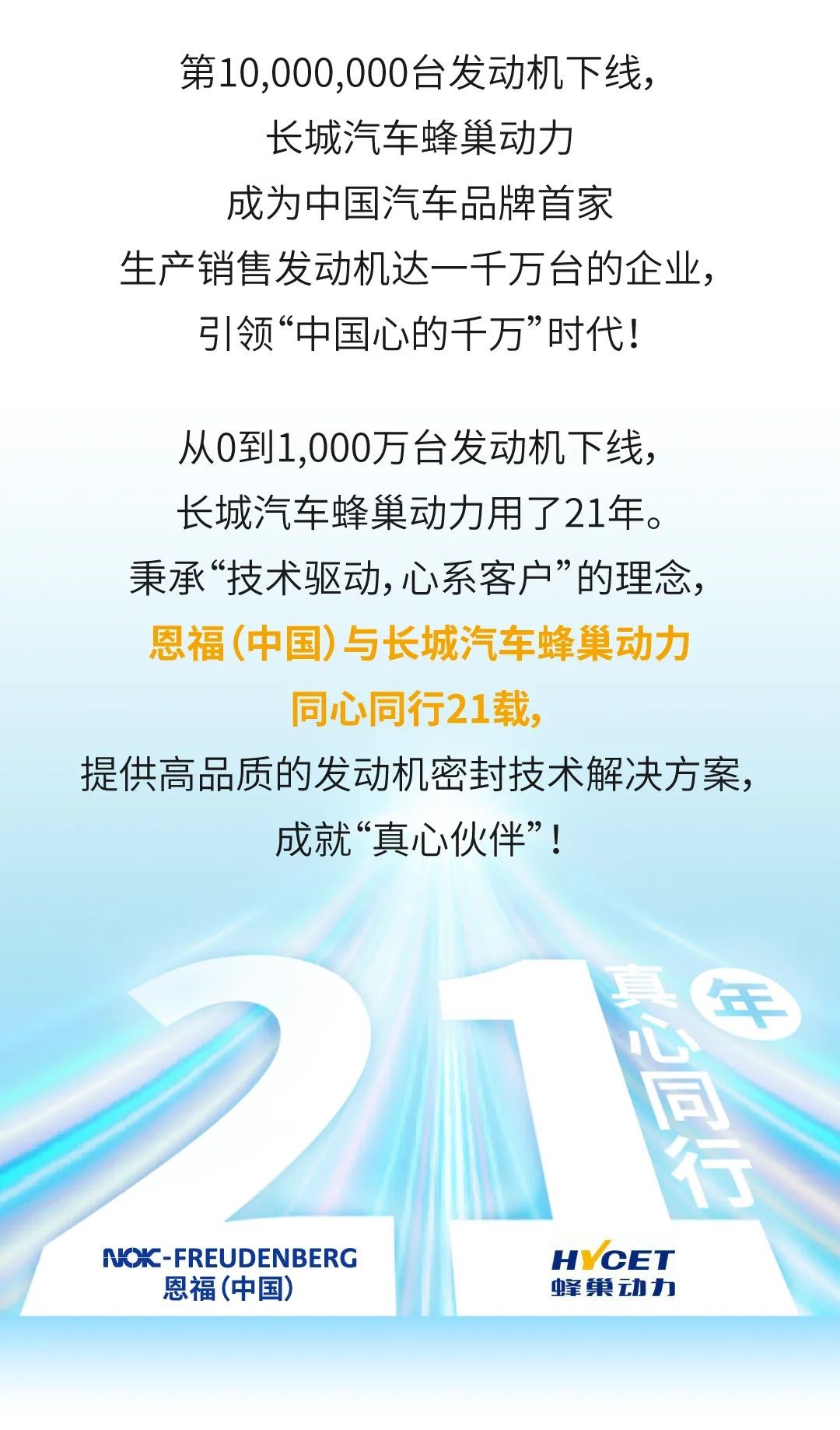 恩福與長(zhǎng)城汽車(chē)蜂巢動(dòng)力, 真心同行的21年 !